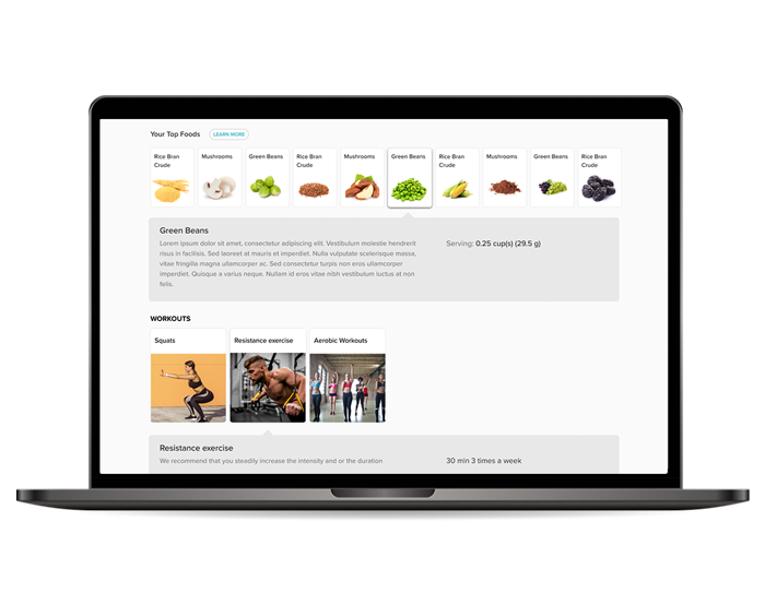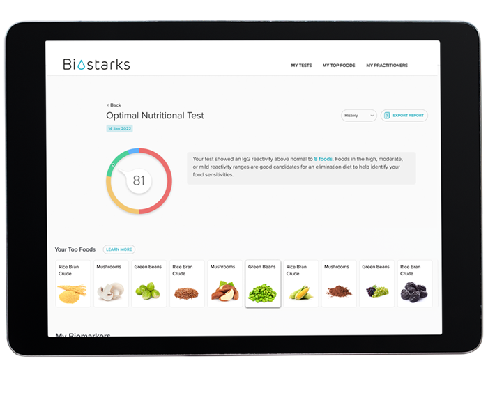 Your results come complete with personalized nutritional and training recommendations, complete with lists of foods and portions you should incorporate into your diet to help you reach the optimal level for each biomarker!
